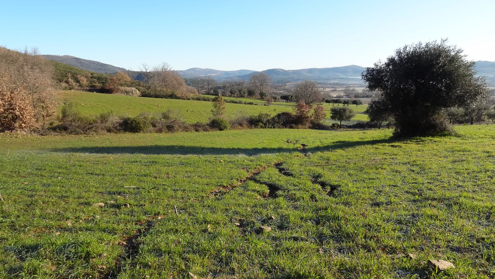 Em direcção sudoeste, caminhos rurais e campos geados levaram-me à base do morro sul da Serra d'Opa, designado por