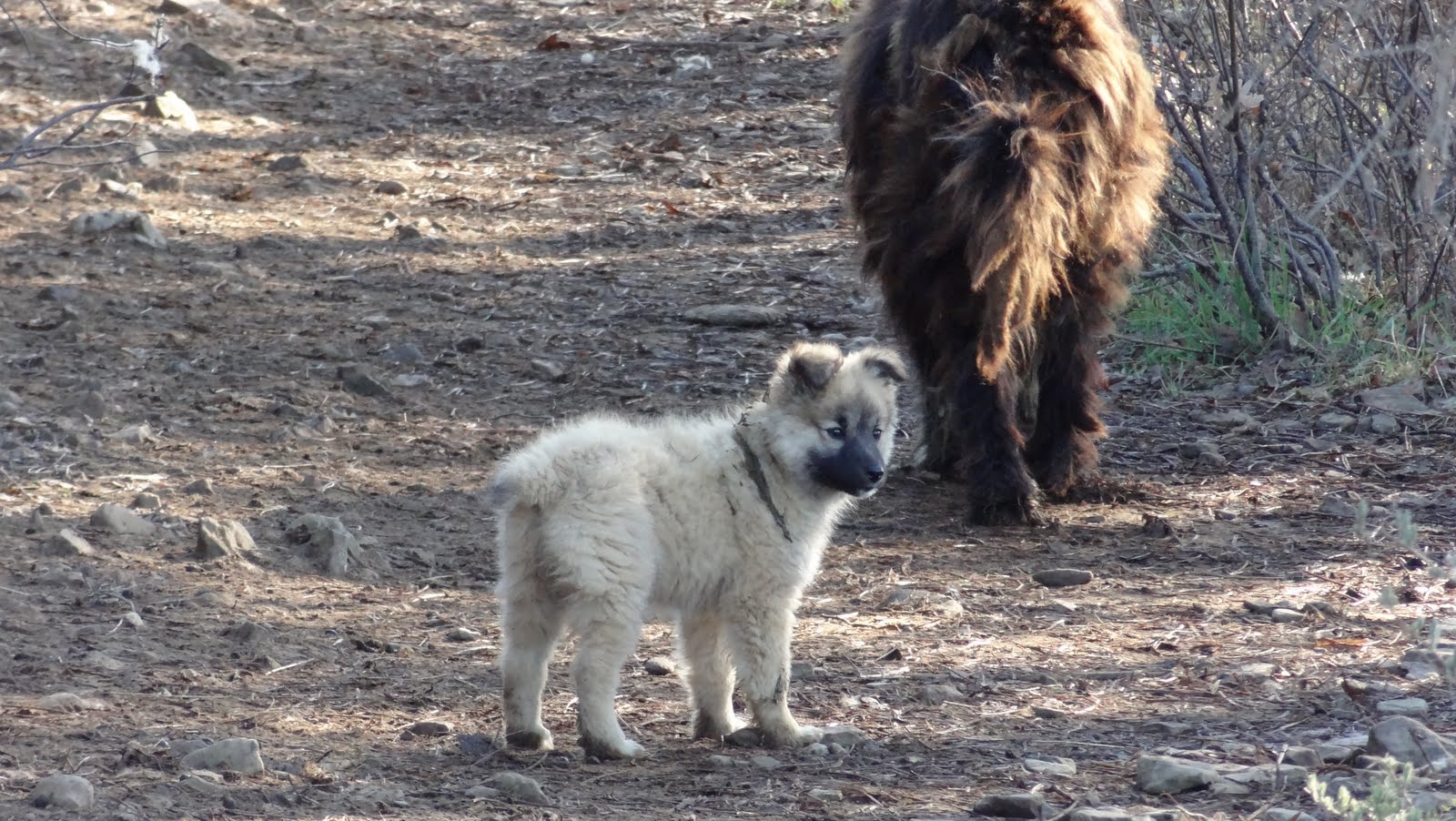 Depois da "aventura", e já no bom caminho, ainda assisti à passagem de um grande rebanho de ovelhas e cabras, seguido de perto por pastores, cães de guarda ... e um aprendiz de cão de guarda...