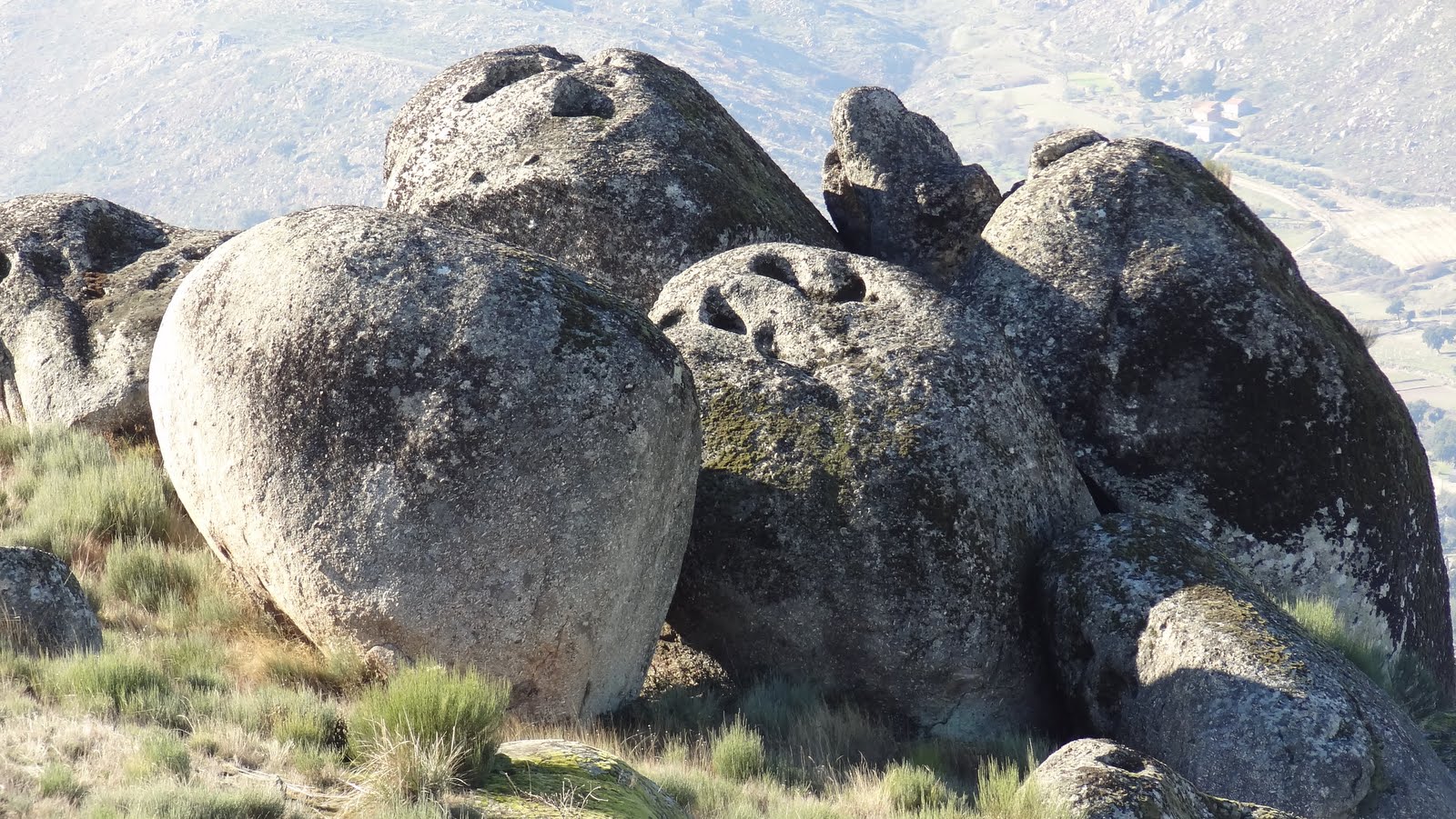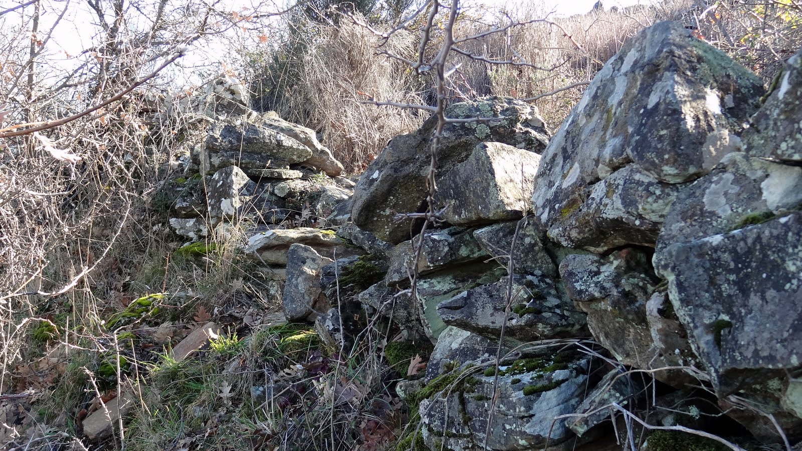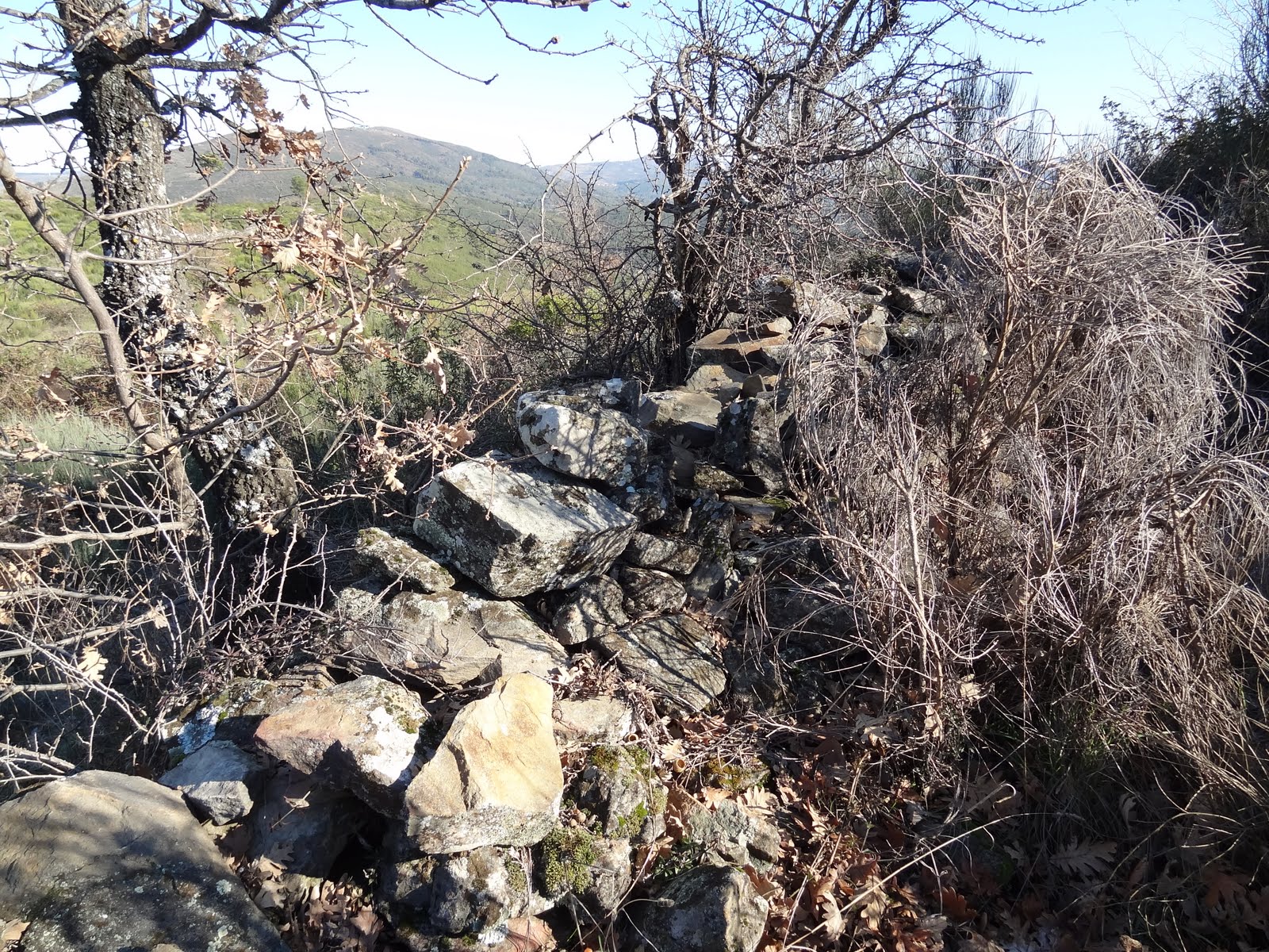 Sortelha Velha, só com alguma boa vontade se conseguem ver vestígios castrejos, pelo menos para um leigo como eu. Mas notam-se os restos de uma muralha circular de pedra solta, com uns 50 metros de diâmetro, que consta ter sido precursora da vila e castelo de