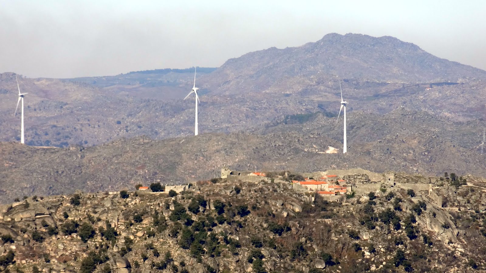 Sortelha as torres eólicas dão um aspecto aterrador à paisagem. As divindades celtas e as mouras encantadas da