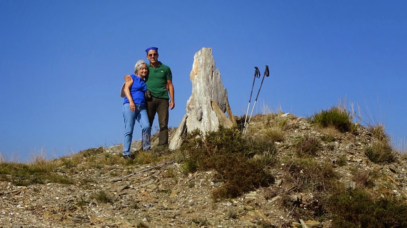 A emoção, a memória daquele dia 11 de Julho, a energia telúrica ... algo me fez erguer um novo "monolito". Não é o mesmo, não é o "nosso" ... mas de algum modo aquele cume, aquele local emblemático do nosso Caminho ... continua a ser meu, dos meus Irmãos com quem o subi de mochilas às costas ... e agora também dos meus filhos! Se aquelas lajes falassem...! Mas elas falarão, contarão às outras as estórias e vivências de quatro portugueses que se tornaram Irmãos, que as ergueram num "