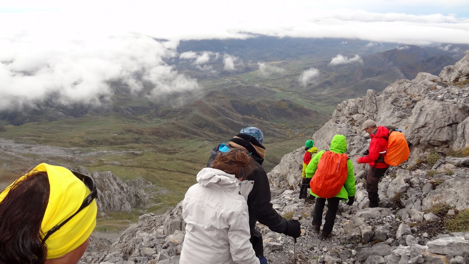 Ubiñas sopravam as nuvens por fracções de segundo, que nos abriam janelas sobre o "mundo perdido" que estávamos a sobrevoar. Ali, entre a rocha e o céu, entre a neblina e os laivos do horizonte, sentíamo-nos pequenos, insignificantes, dependentes da Natureza que nos rodeava ... dependentes da Montanha, Senhora e Mãe.