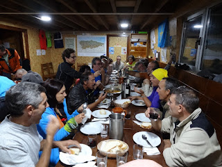 Refúgio de Meicín é um "hotel" de 5 estrelas. Bem equipado, boas instalações, a cordialidade da simpática guarda Tania, são características que logo nos cativaram. Ao jantar ... nem o bolo e as velas faltaram ao aniversário do Zé Manel ... mas às onze era a hora do silêncio ... um silêncio interrompido, durante a alta e escura noite, pelo soar das fortíssimas rajadas de vento e pela chuva que amedrontava ... os menos crédulos no pacto da Cristina com S. Pedro...