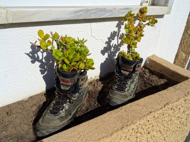 Caminhos de Santiago: darem vida a um local, servirem de vaso! E lá estão elas portanto, "plantadas" numa das floreiras de minha casa ... como imagem permanente das muitas recordações que me deixaram. Já não subirão mais a escada do ninho, como escrevi em Julho de 2014, no fim do