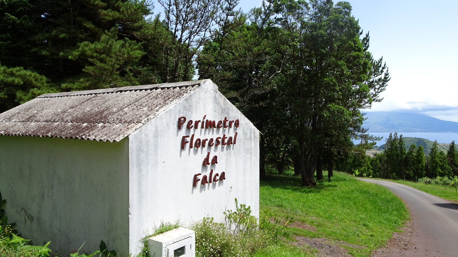 Quinze minutos depois do meio dia, iniciei a descida, em direcção às ribeiras da Lomba e das Águas Claras e pelo caminho florestal da Serra da Feteira. As panorâmicas para a costa sul iam surgindo, com a baía de Porto Pim ao fundo e o Pico sempre envergonhado, descobrindo de vez em quando o Piquinho a sobressair das nuvens. O almoço, ligeiro ... foi com essa bela panorâmica.
